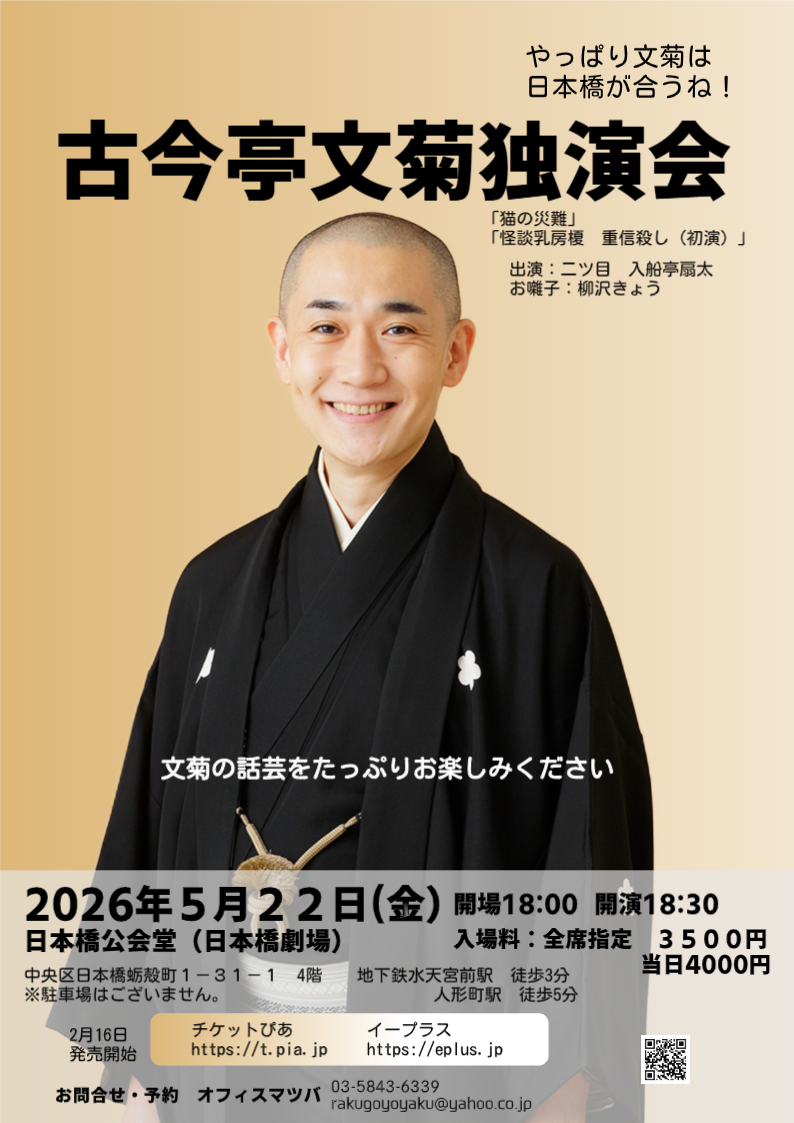 オフィスマツバ(03-5843-6339 rakugoyoyaku@yahoo.co.jp)