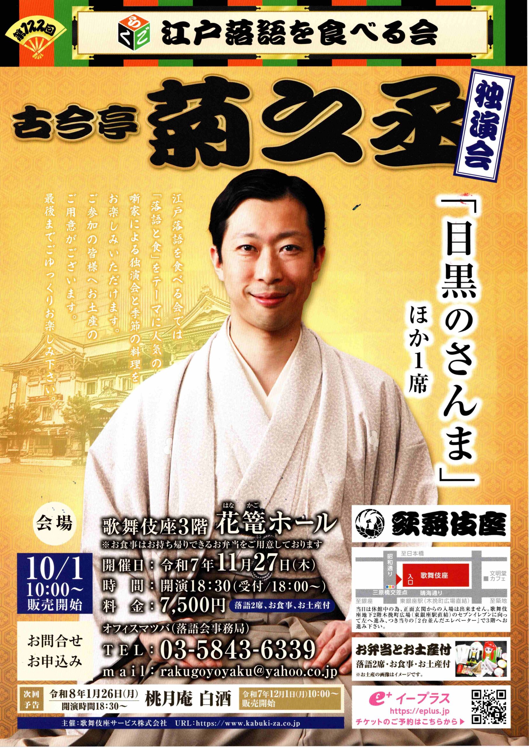 チケットご予約・お問い合わせ オフィスマツバ(03-5843-6339 rakugoyoyaku@yahoo.co.jp)