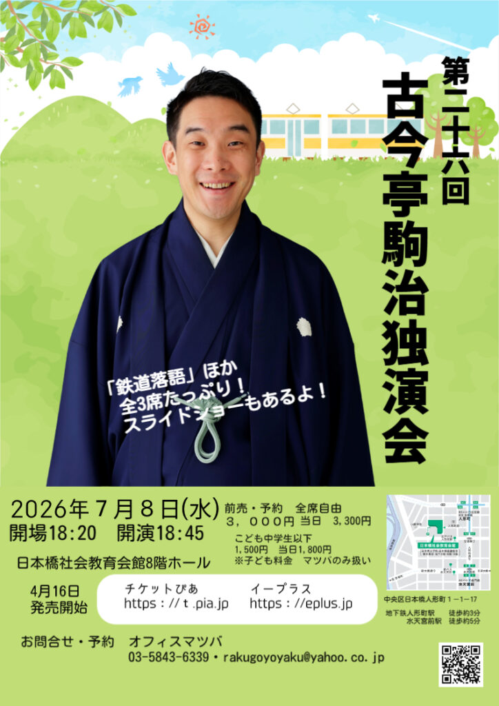 オフィスマツバ(03-5843-6339 rakugoyoyaku@yahoo.co.jp)