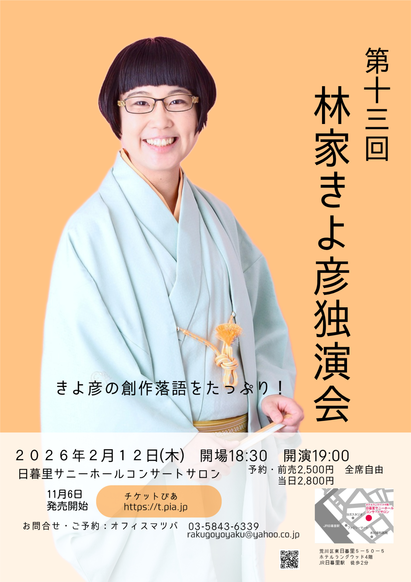 チケットご予約・お問い合わせ チケットぴあ オフィスマツバ(03-5843-6339 rakugoyoyaku@yahoo.co.jp)