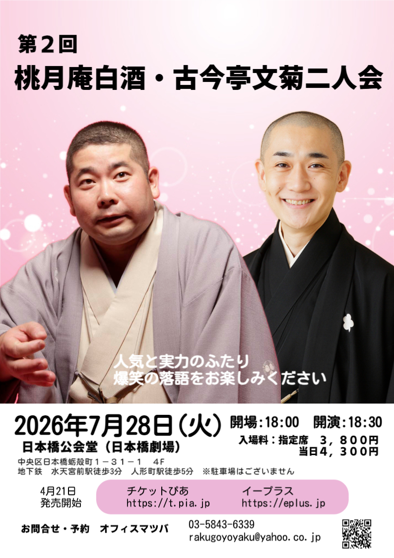 チケット チケットぴあ イープラス チケットご予約・お問い合わせ オフィスマツバ(03-5843-6339 rakugoyoyaku@yahoo.co.jp)