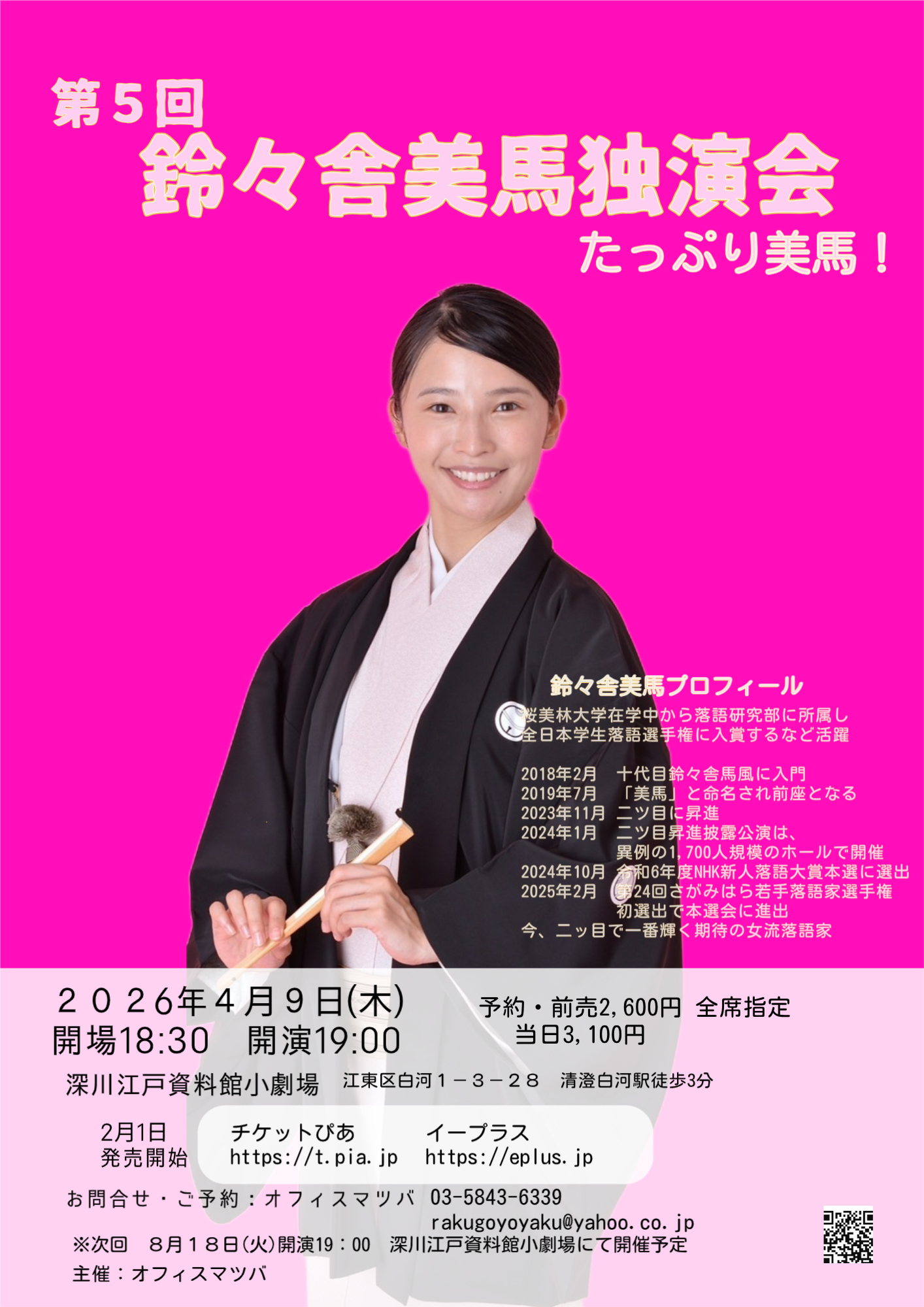 チケットご予約・お問い合わせ チケットぴあ イープラス オフィスマツバ(03-5843-6339 rakugoyoyaku@yahoo.co.jp)