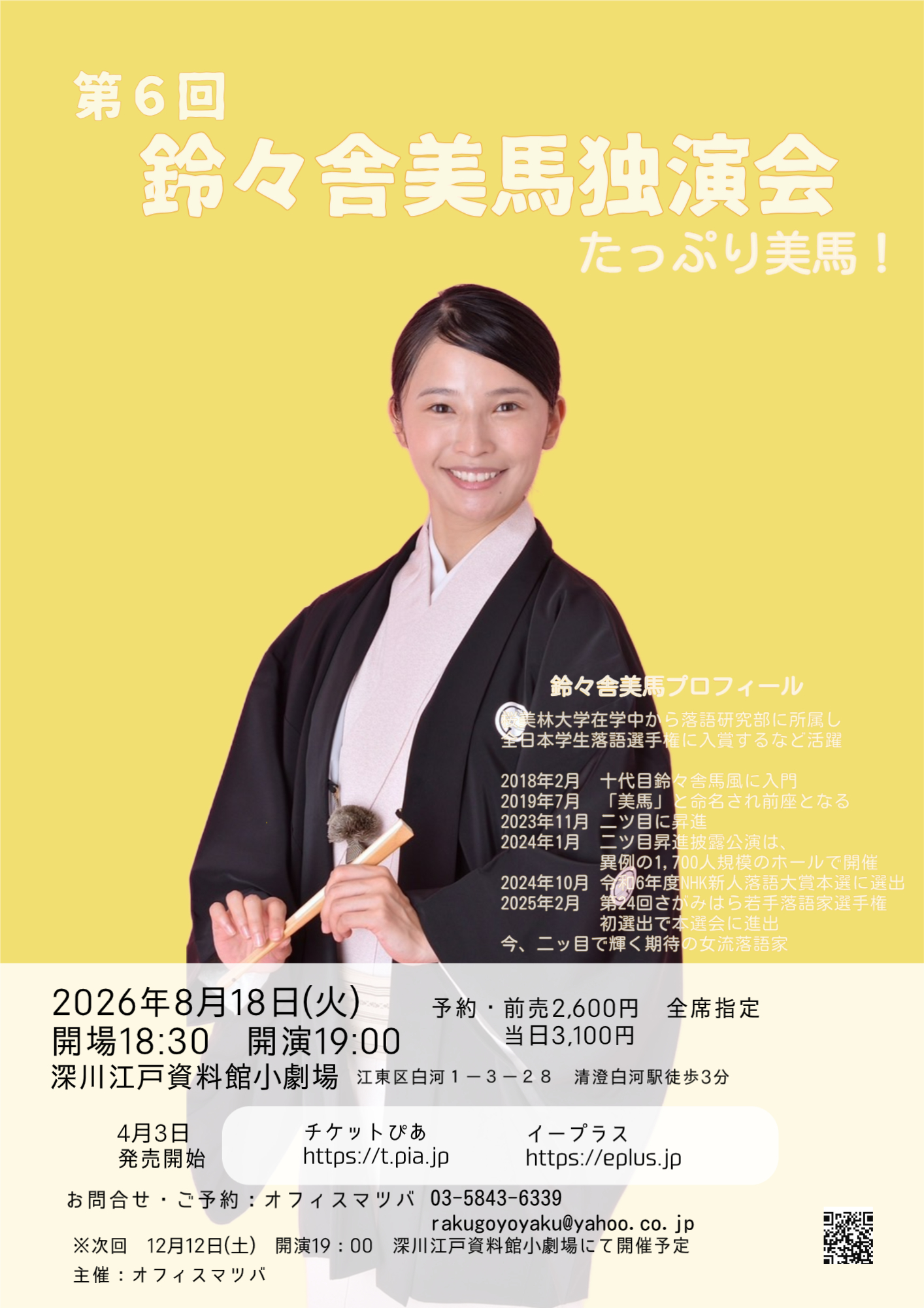 チケットご予約・お問い合わせ チケットぴあ イープラス オフィスマツバ(03-5843-6339 rakugoyoyaku@yahoo.co.jp)