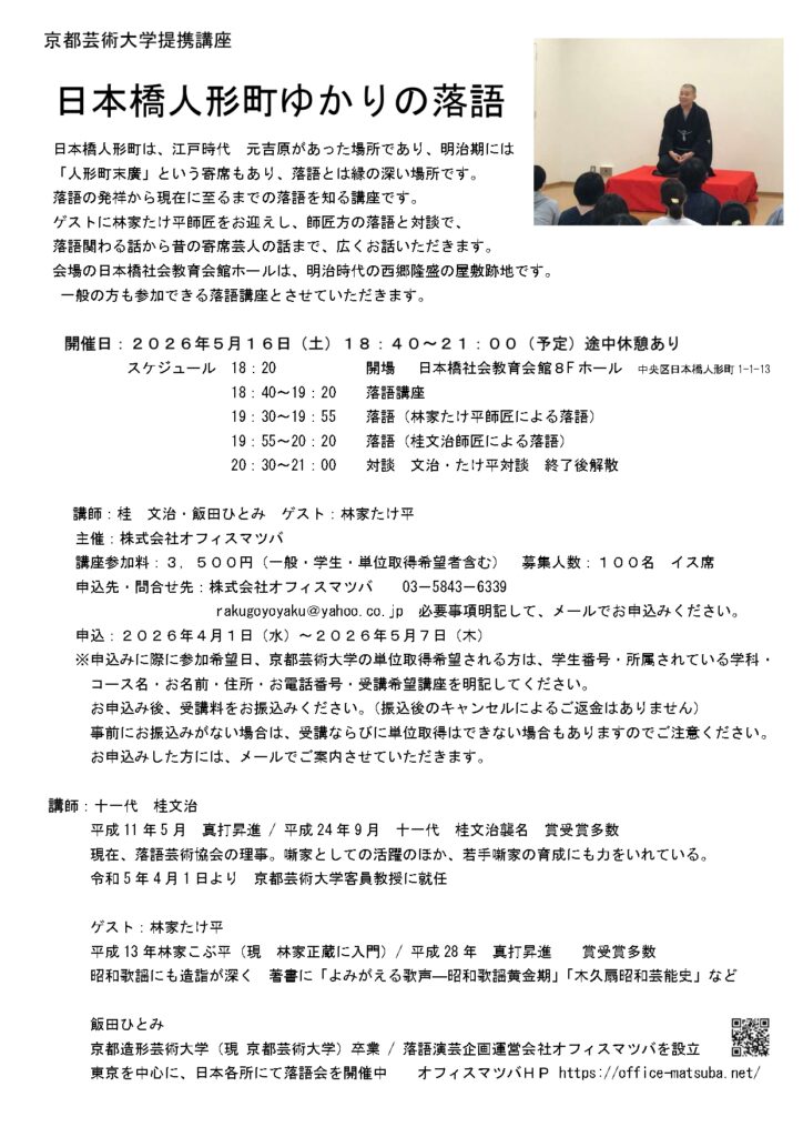 <京都芸術大学提携講座>桂文治/日本橋人形町ゆかりの落語