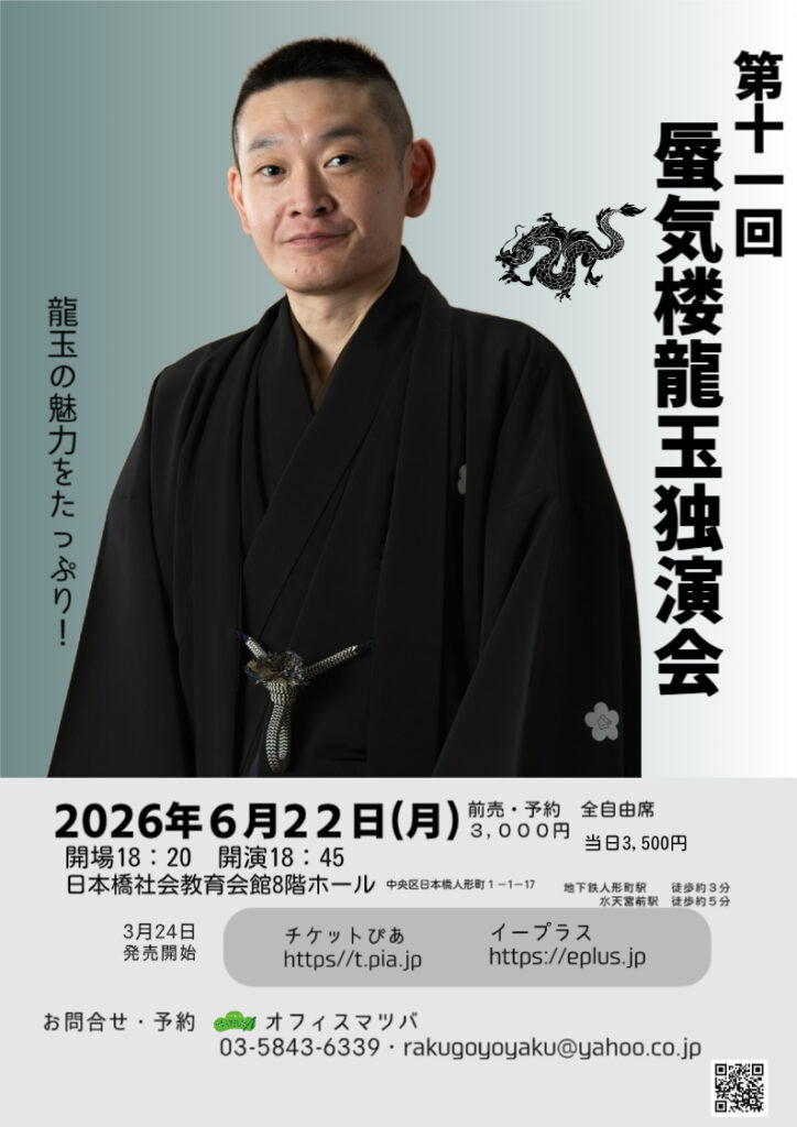 チケットご予約・お問い合わせ オフィスマツバ(03-5843-6339 rakugoyoyaku@yahoo.co.jp)